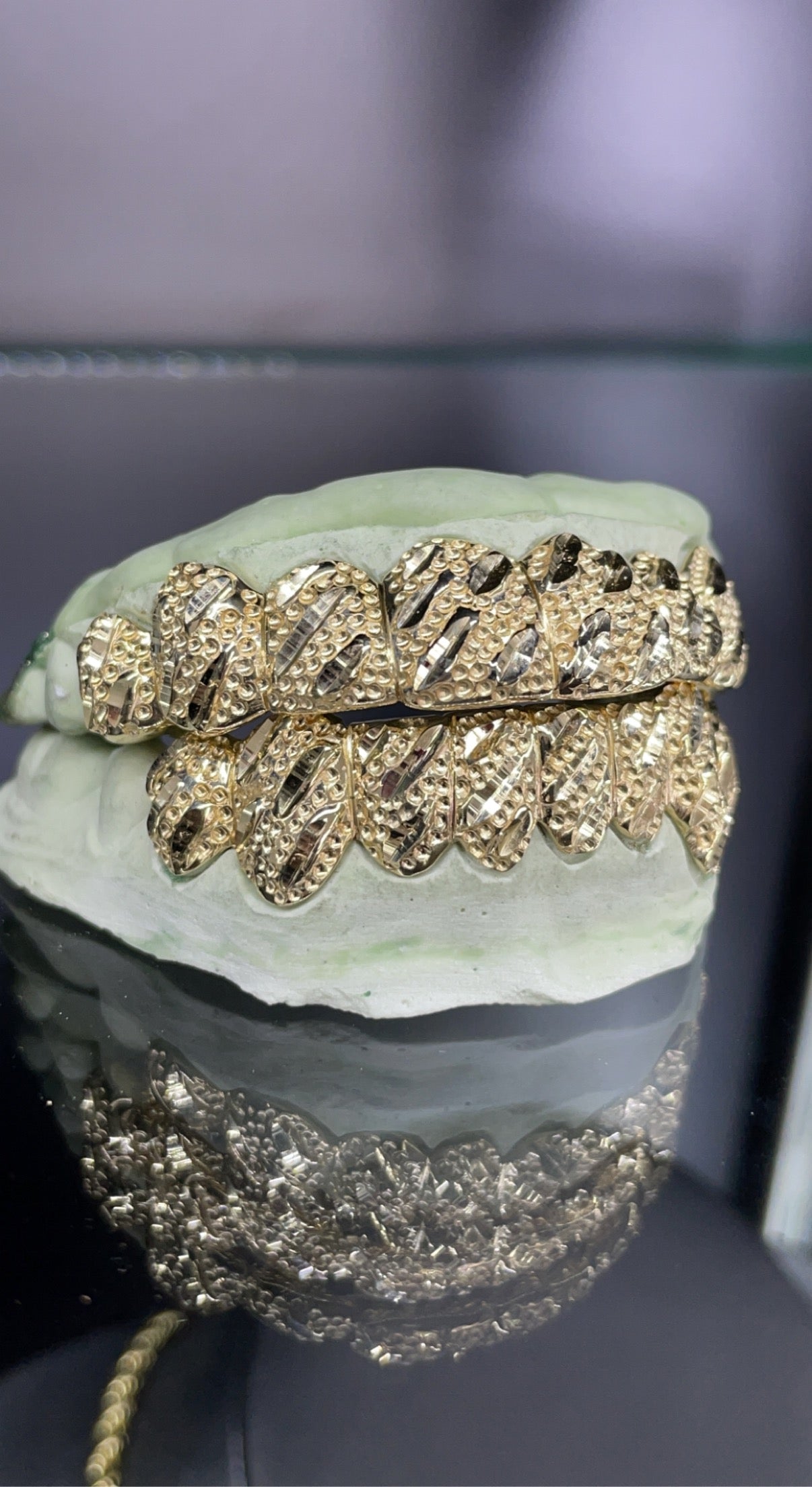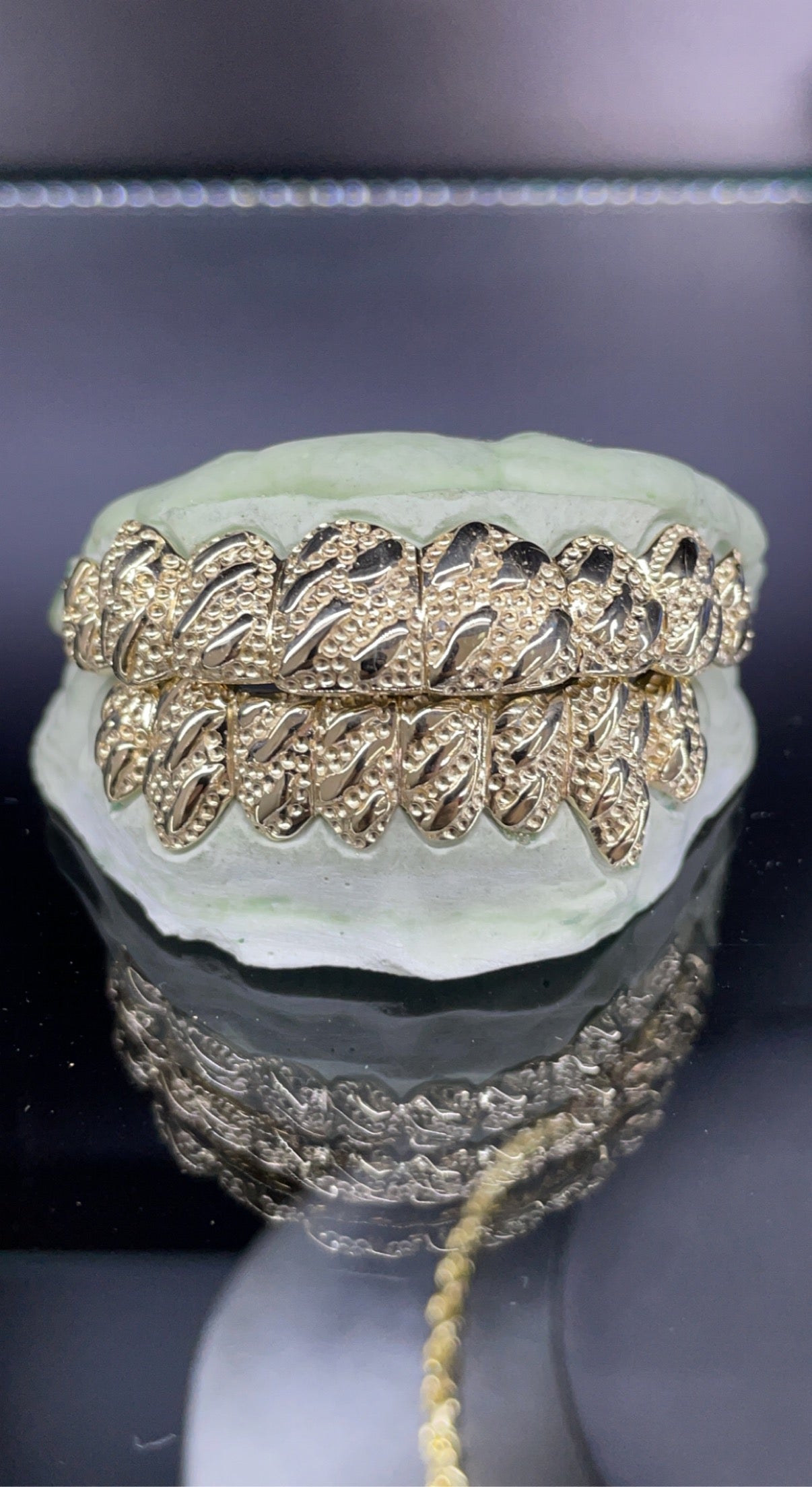 Camo Nugget grillz feature a textured nugget design reminiscent of camouflage.