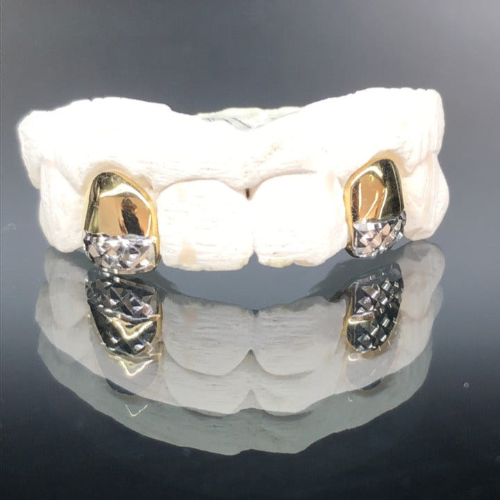 2 Teeth Gold Grillz (White Gold Diamond Cut w/ Back Bridge)
