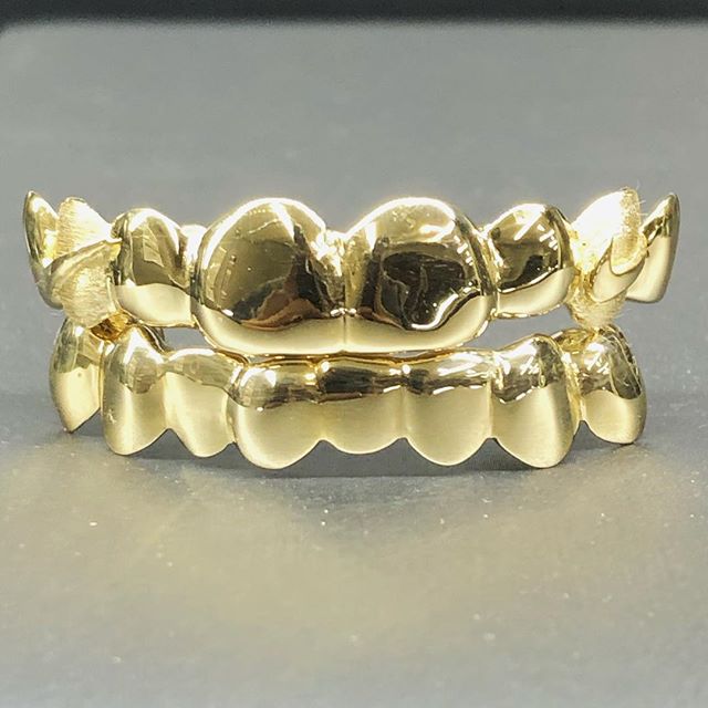 16 Teeth Gold Grillz - 8 Tops/Bottoms (Custom Logo Fangs)